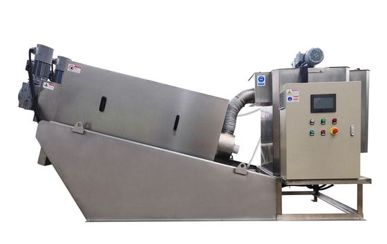 製品概要:スパイラルスラド脱水機は,完全に自動制御キャビネット,フロッキュレーションコンディショニングタンク,スラド濃度と脱水体,および収集タンクを1つのユニットに統合しています.前部は集中部分です渦巻きシャフトの回転によって,泥は濃縮部分から脱水部分に運ばれます.同時に,逆圧プレートの阻害作用下で内部圧力が発生し,容量は徹底的な脱水を達成するために継続的に減少します.